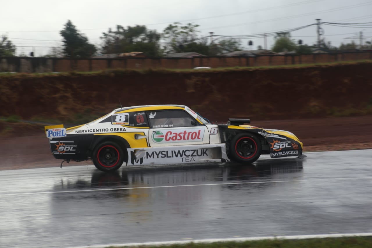 Gran parte de la carrera fue dominada por el obereño Juan Pablo Urrutia (Renault Clío), pero el campeón salió mal de una curva y tuvo que ceder ante Ezequiel Mieres (Ford Fiesta Kinetic), quien pasó a liderar la carrera. Alejandro Tarnoski (VW Gol) se tocaba con Urrutia y el campeón quedaba a un costado de la pista. Por ese toque el eldoradense sería excluido. Desde el fondo y ya con la pista semiseca, Santiago Viana (Renault Clío) empezó a dar su show y a sobrepasar rivales. El piloto de Iguazú largó desde boxes y se instaló segundo a falta de una vuelta. En el giro final tiró todo pero no le alcanzó para bajar a Mieres que se volvió a imponer en su segunda carrera en la categoría manteniendo un 100 por ciento de efectividad.