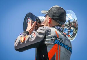 El día comenzó con la disputa de la primera serie y Bundziak no tuvo una buena largada por lo que cayó al segundo lugar detrás de Gaspar Chansard (Dodge), quien por afuera tomó la punta. El misionero no se quedó, aprovechando el gran auto que le dio el Coiro Dole Racing empezó a presionar a su rival. Bundziak logró que cometa el error en la entrada de la chicana para volver a tomar la punta de la batería a falta de dos giros del final. El piloto de Iguazú ganó su serie y hacía ilusionar con un gran domingo.