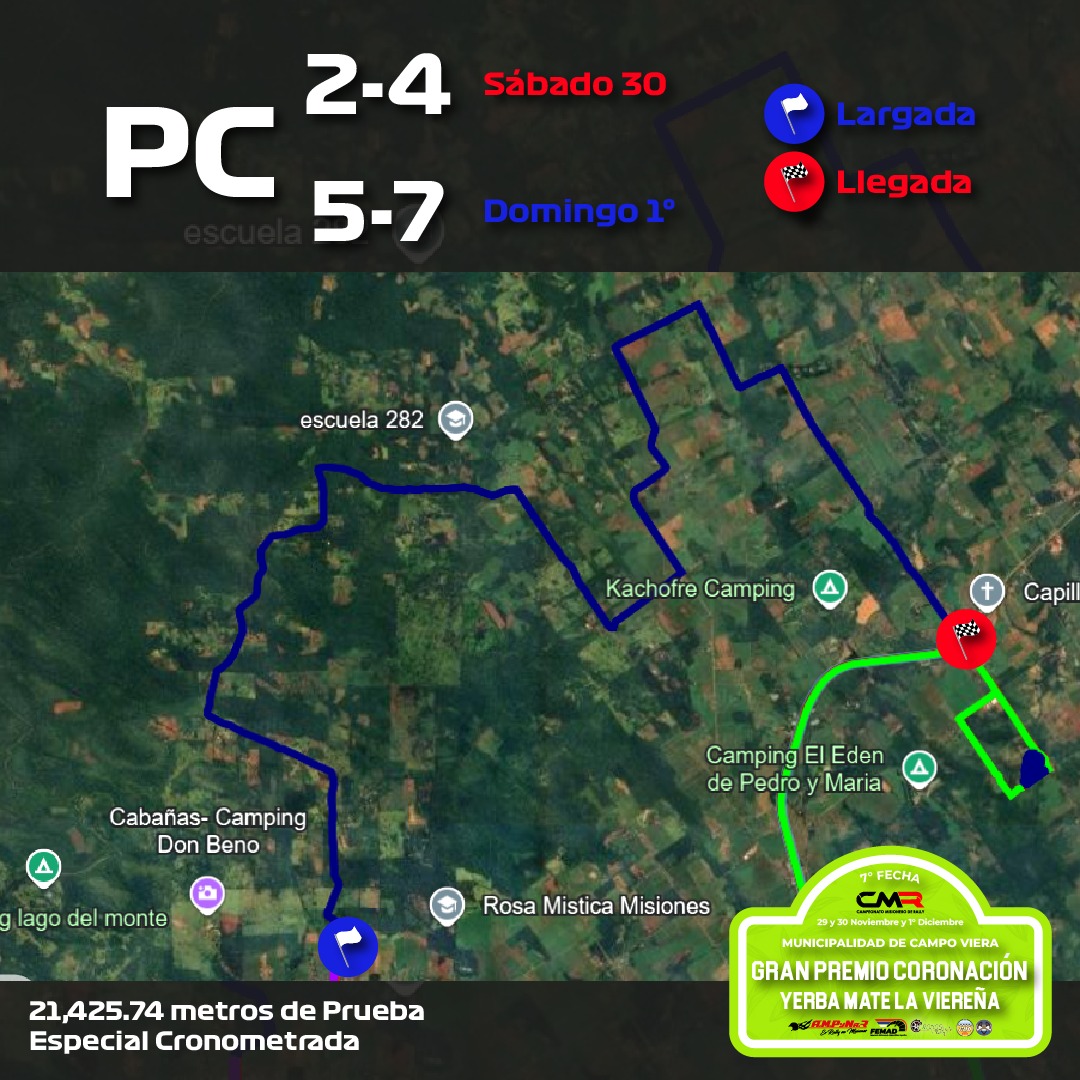 El Gran Premio Coronación comenzará el viernes con la llegada de los equipos que instalarán el Parque de Asistencia en la avenida del Té. Por la noche se realizará la rampa de largada. El sábado desde las 9 se correrán cuatro pruebas especiales. El domingo la segunda etapa comenzará a las 8.30 se correrán tres pruebas especiales más donde se definirán los campeones de cada categoría.