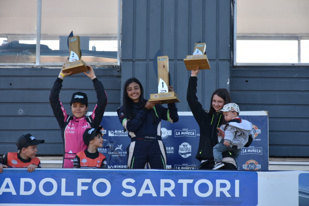 En las Damas, en tanto, la posadeña Espíndola finalizó tercera en la pista y heredó la victoria ya que los karts de Alicia Graef y Melisa Barrios fueron excluidos en la revisión técnica luego de la final. Luana Marín y Antonella Santamaría completaron el podio.