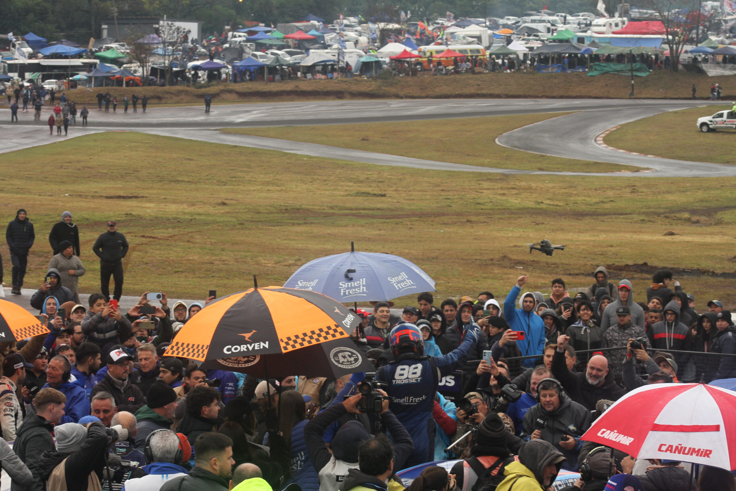 Más allá de la contundencia de Trosset, detrás de él hubo una gran carrera, pese a la pista húmeda. En la vuelta previa se daba el primer golpe de escena y se retrasaba el puntero del campeonato Julián Santero, por un problema en el cable captor en su Ford Mustang. Santero pasó por boxes y desde el último lugar avanzó y terminó en el 30° puesto.